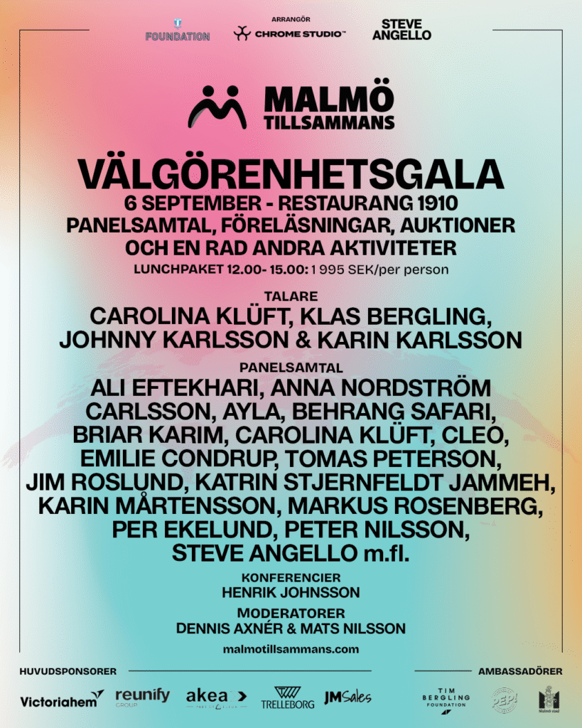 Den 6 september 2025 förvandlas Eleda Stadion till en välgörenhetsgala att minnas. Arrangemanget börjar med en lunch som innehåller panelsamtal, föreläsningar och andra engagerande inslag. Därefter öppnas hela Eleda Stadion upp och bjuder in till Malmös största gratiskonsert genom tiderna. Ett storslaget avslut på dagen – och en manifestation för ett Malmö där alla hör hemma.